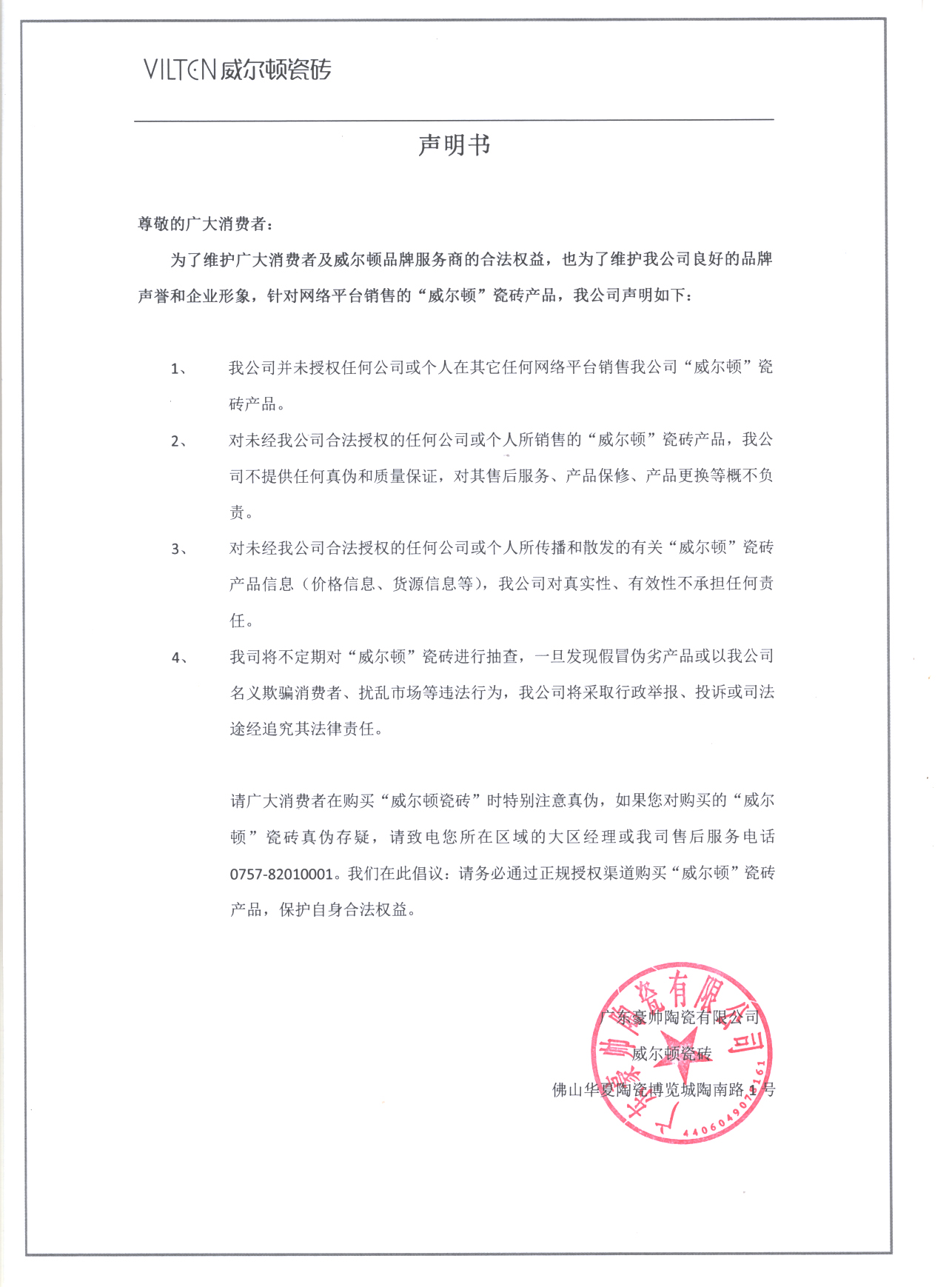 威尔顿瓷砖自创立至今,不断为产品的开发与制造订立苛刻标准。这一标准以商户的 需求为最终评判,从单一产品的标准化与规模化制造,到丰富花色与产品配件的丰富 组合,是一种思想与实践上的与时俱进。15年对初心的坚守威尔顿已步入专业而成熟 的瓷砖产品制造商,意味着持续累积的价值分享。